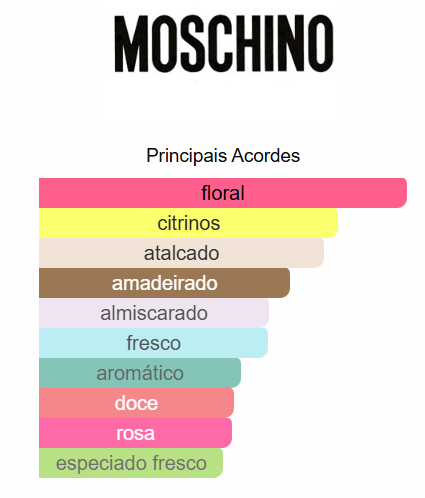 Cheap & Chic de Moschino é um perfume Floral Feminino. Cheap & Chic foi lançada em 1995. As notas de topo são: Yuzu, Bergamota, Petitgrain e Pau-Rosa. As notas de coração são: Cyclamen, Vitória Régia, Rosa, Violeta, Peônia e Jasmim. As notas de fundo são: Almíscar, Âmbar Cinzento, Íris, Vetiver, Sândalo, Orquídea, Fava Tonka e Baunilha.