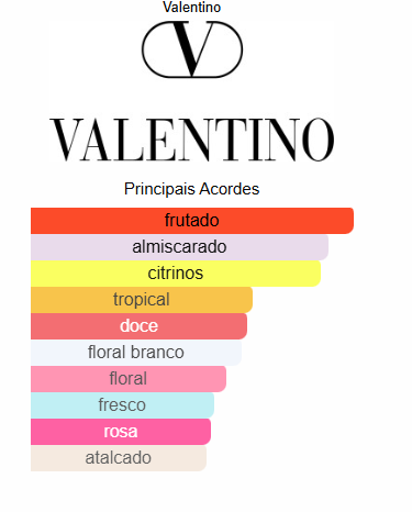Valentino Donna Born In Roma Coral Fantasy de Valentino é um perfume Floral Frutado Feminino. Valentino Donna Born In Roma Coral Fantasy foi lançada em 2022. Valentino Donna Born In Roma Coral Fantasy foi criado por Nadege le Garlantezec e Jacques Huclier. As notas de topo são: Kiwi e Laranja Brasileira. As notas de coração são: Jasmim Indiano, Rosa e Ambreta. As notas de fundo são: Almíscar Branco e Cedro do Texas.