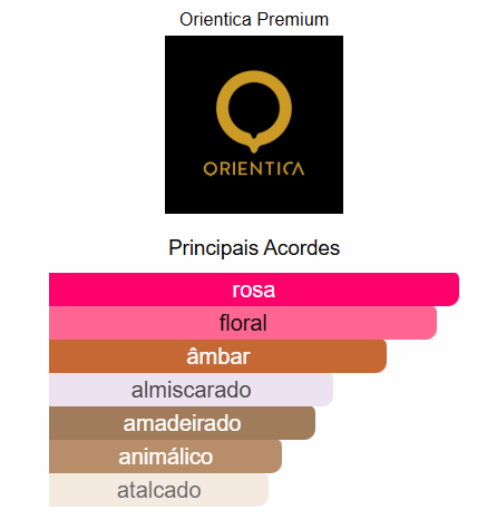 Rosé de Orientica de Orientica Premium é um perfume Feminino. Esta é uma nova fragrância. Rosé de Orientica foi lançada em 2022. As notas de topo são: Rosa, Almíscar e Notas Florais. As notas de coração são: Âmbar Cinzento, Flor de Pêssego e Agulhas de Pinheiro. As notas de fundo são: Almíscar, Madeira Seca e Âmbar.